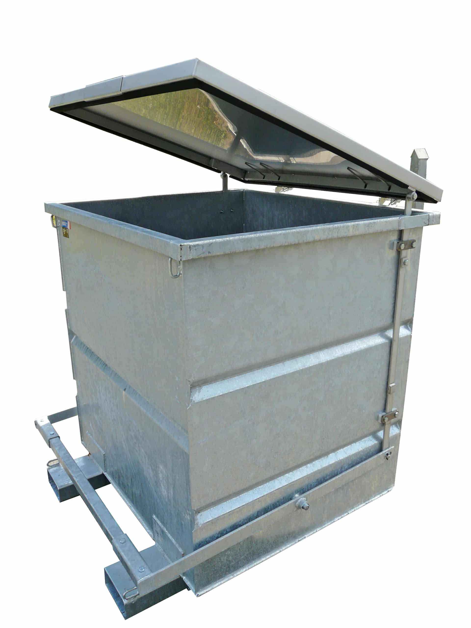 Ajout d'un couvercle à commande d'ouverture au pied sur une benne de modèle BR-C
